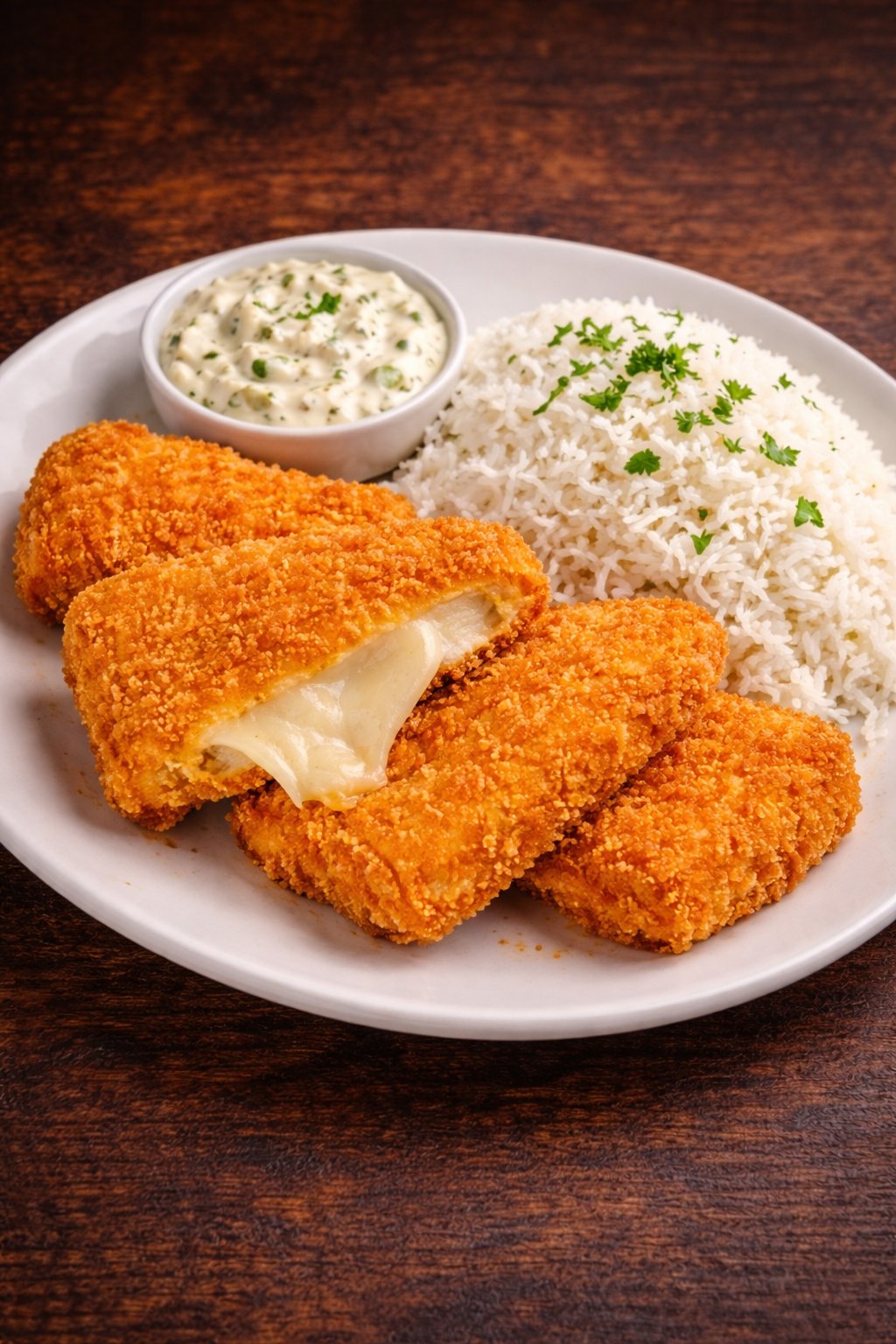 Rántott sajt-Jázminrizzsel,tartár mártással