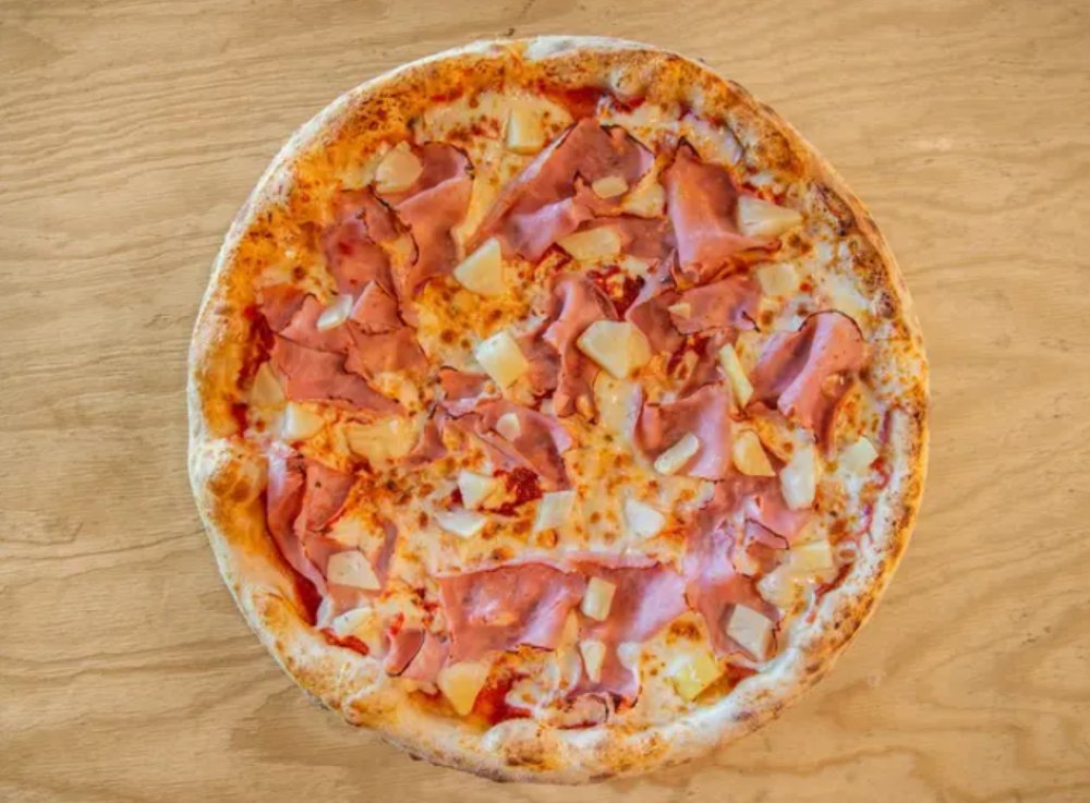 paradicsomszósz, cotto sonka, ananász, mozzarella