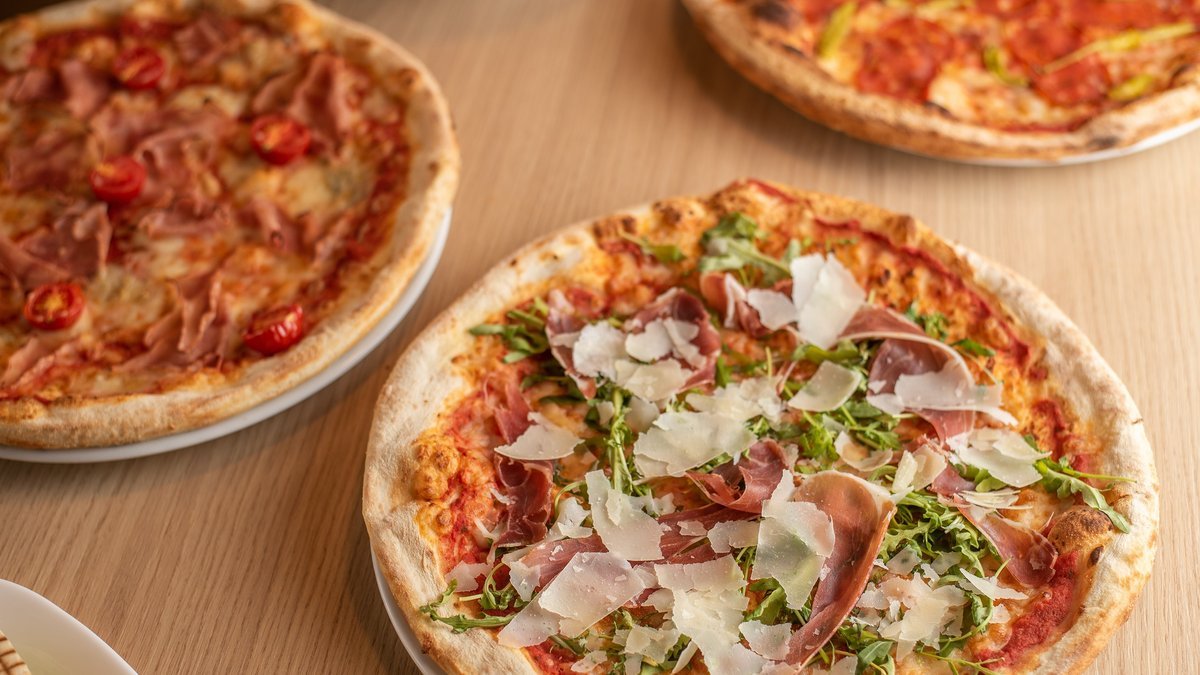 paradicsomszósz, mozzarella, cotto sonka