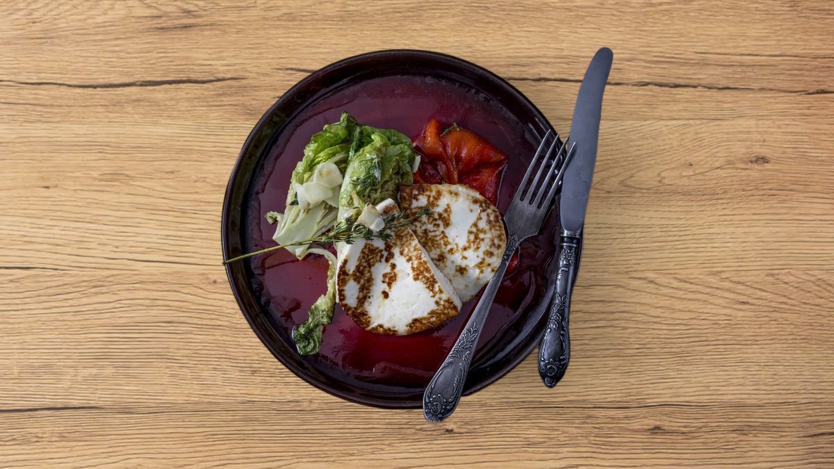Grillezett gomolyasajt friss salátával