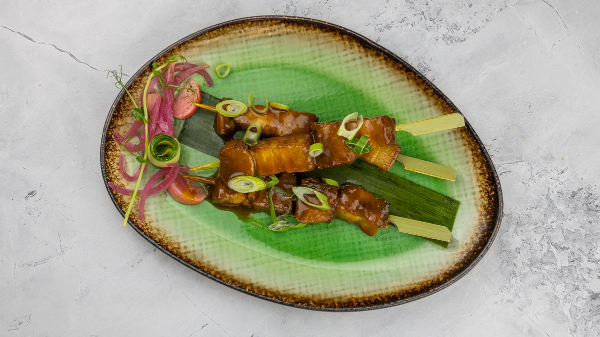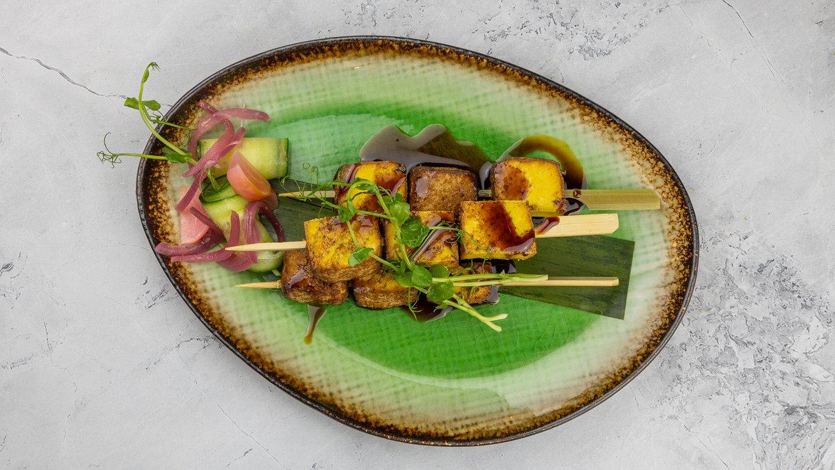 Füstölt tofu nyárs (180 gr) szaté, édes szójaszósszal