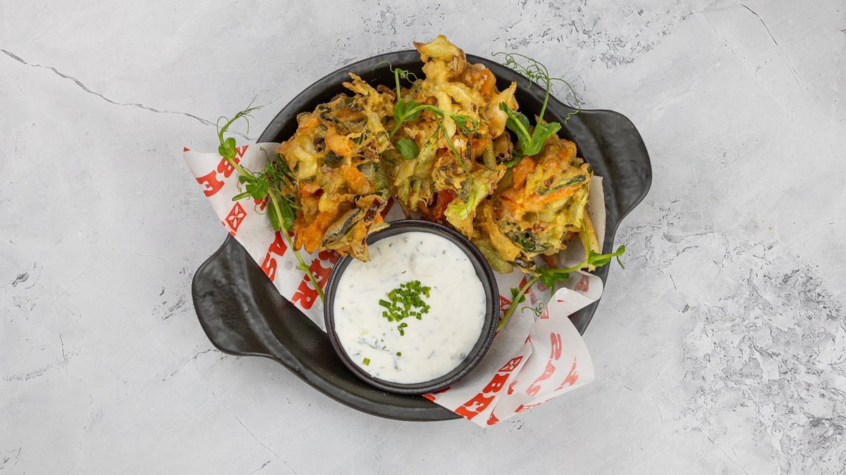 Bakwan zöldségfánk fokhagymás-kapros mártogatóval