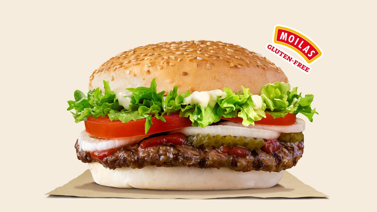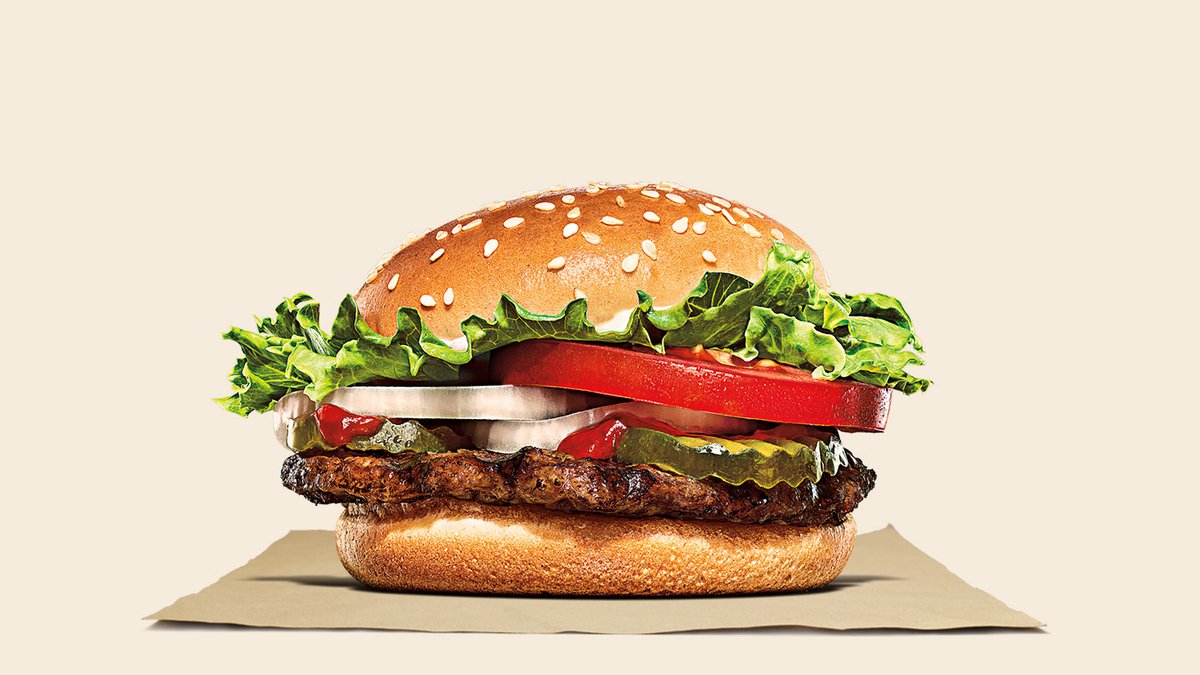 A klasszikus WHOPPER® szendvicset a tűzön grillezett marhahús, a ropogós uborkaszeletek, a nap érlelte paradicsom, a friss hagyma, a ropogós jégsaláta levelek, a krémes majonéz és a ketchup teszik felejthetetlenné. Allergének: glutén, mustár, tojás, zeller, szezámmag