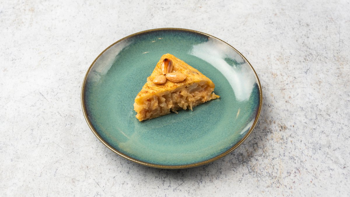 Potato, cod, egg and onion with a toping of smoked paprika in the style of Salamanca (contains egg)