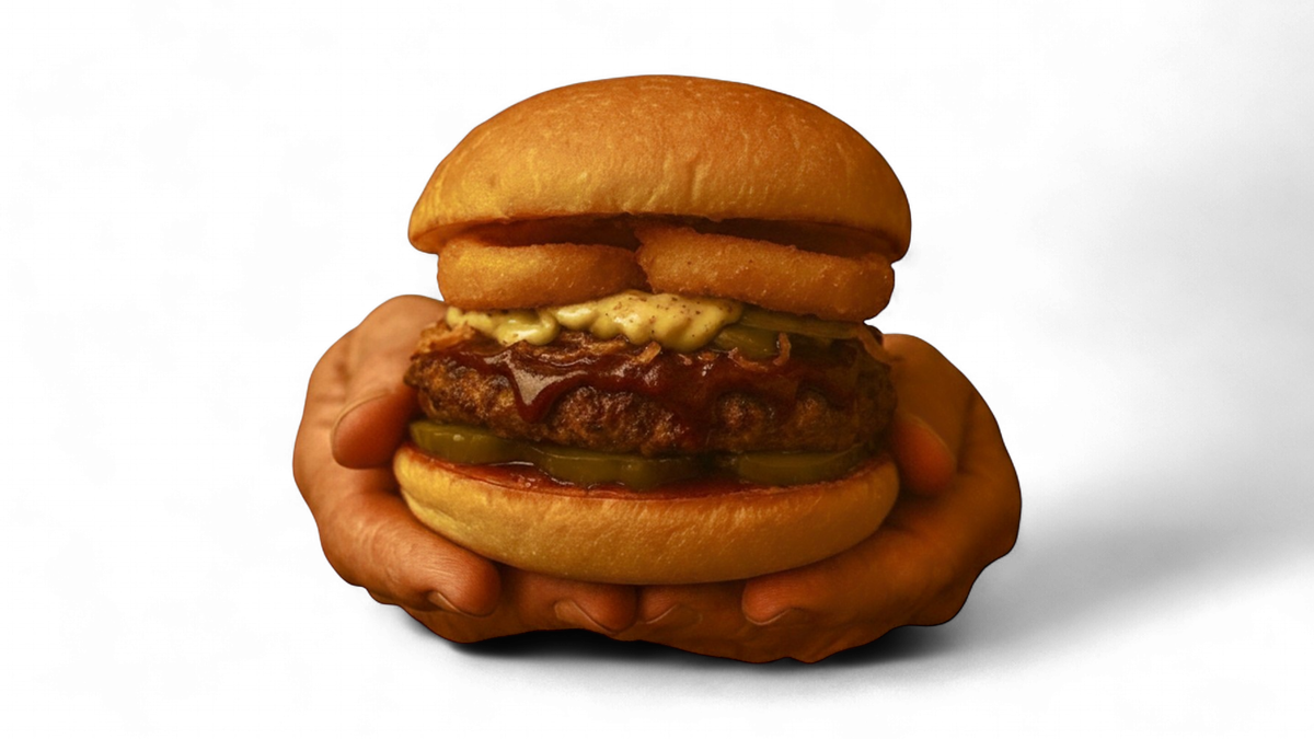 180g marhahúspogácsa, angol mustár, majonéz, ketchup, bbq pulled pork, coleslaw saláta, hagymakarika /TEJMENTES/