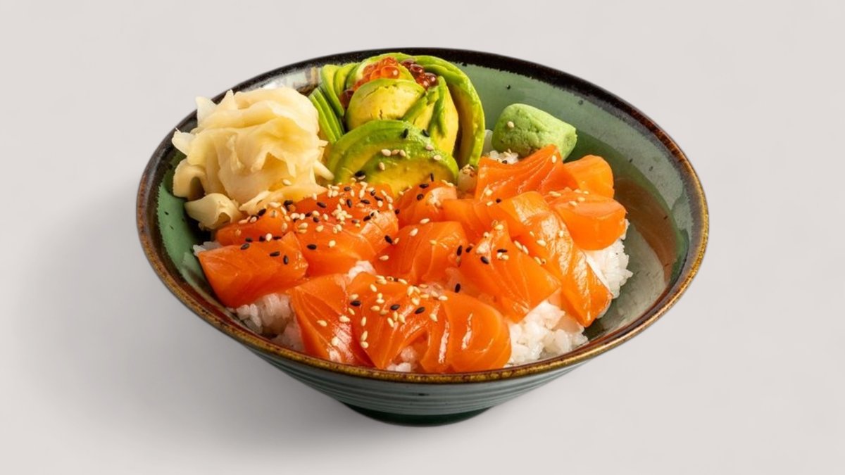 Avokádó és nyers lazacszeletek, sushi rizsre tálalva / Raw salmon slices, avocado, sushi rice