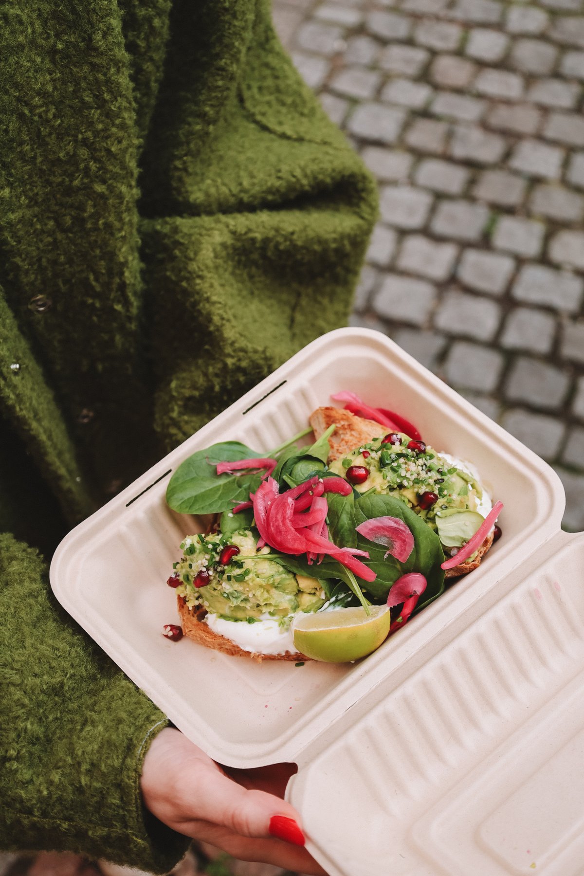 kovászos kenyér, avokádó, ricotta, bébispenót, savanyított lilahagyma, gránátalma, kendermagpehely, lime-koriander szósz allergén: glutén, tej, szezámmag