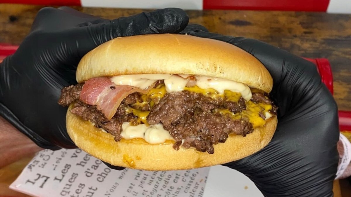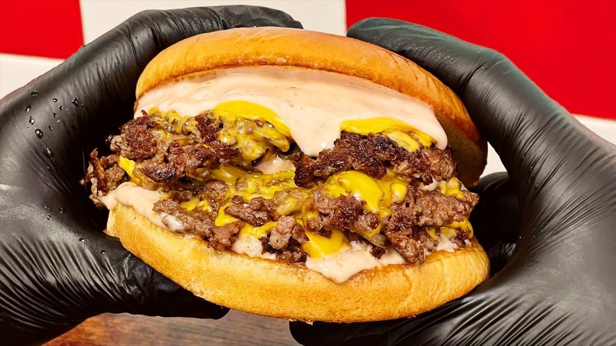 Az igazán bátraknak! 6 húsos, 12 sajtos smashed szörnyeteg oklahoma stílusban a Hacky's házi szósszal és ecetes uborkával. 150g prémium holland sültkrumpli és egy 0,4L-es vaníliás milkshake.