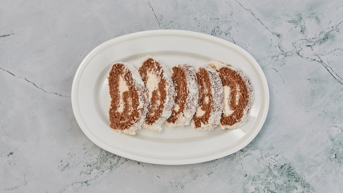 Puha, kakaós kekszes alap, selymes kókuszos krémmel töltve, kókuszreszelékbe forgatva. Pont olyan, ahogy otthon készítjük házi készítésű krémmel töltött!
