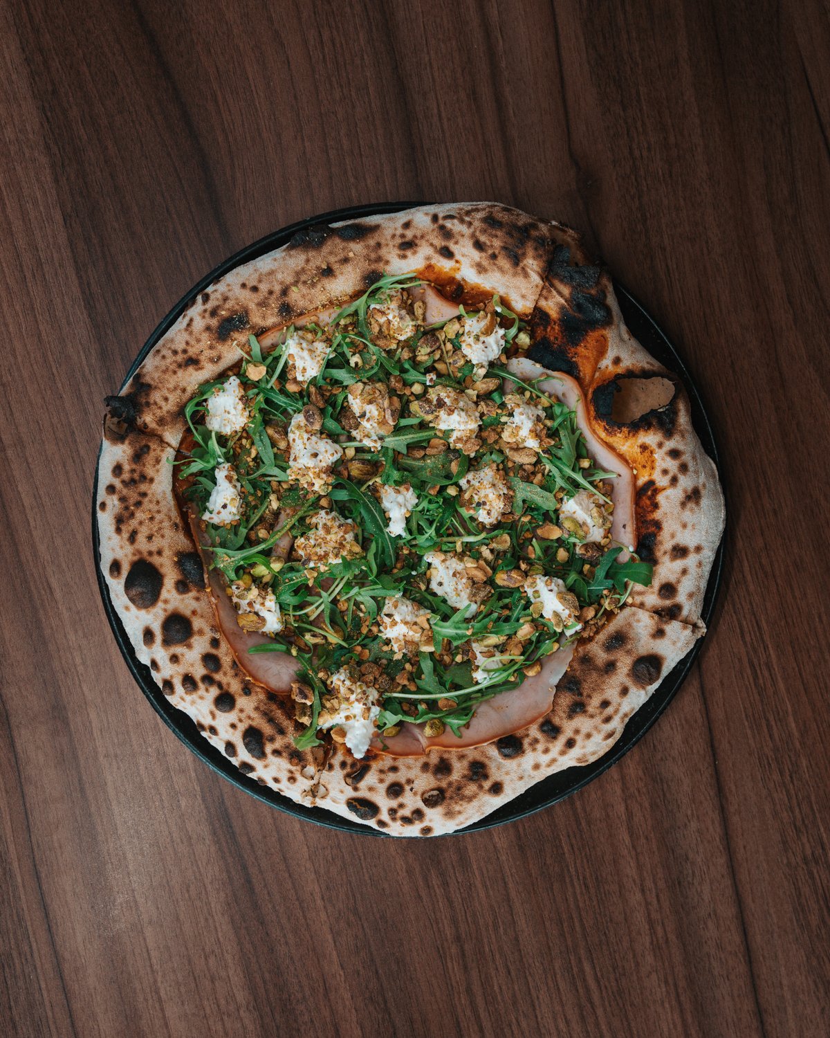 Paradicsom Pesto, Fior Di Latte, Cotto Sonka, Pisztácia, Feta Krém, Rukkola Saláta