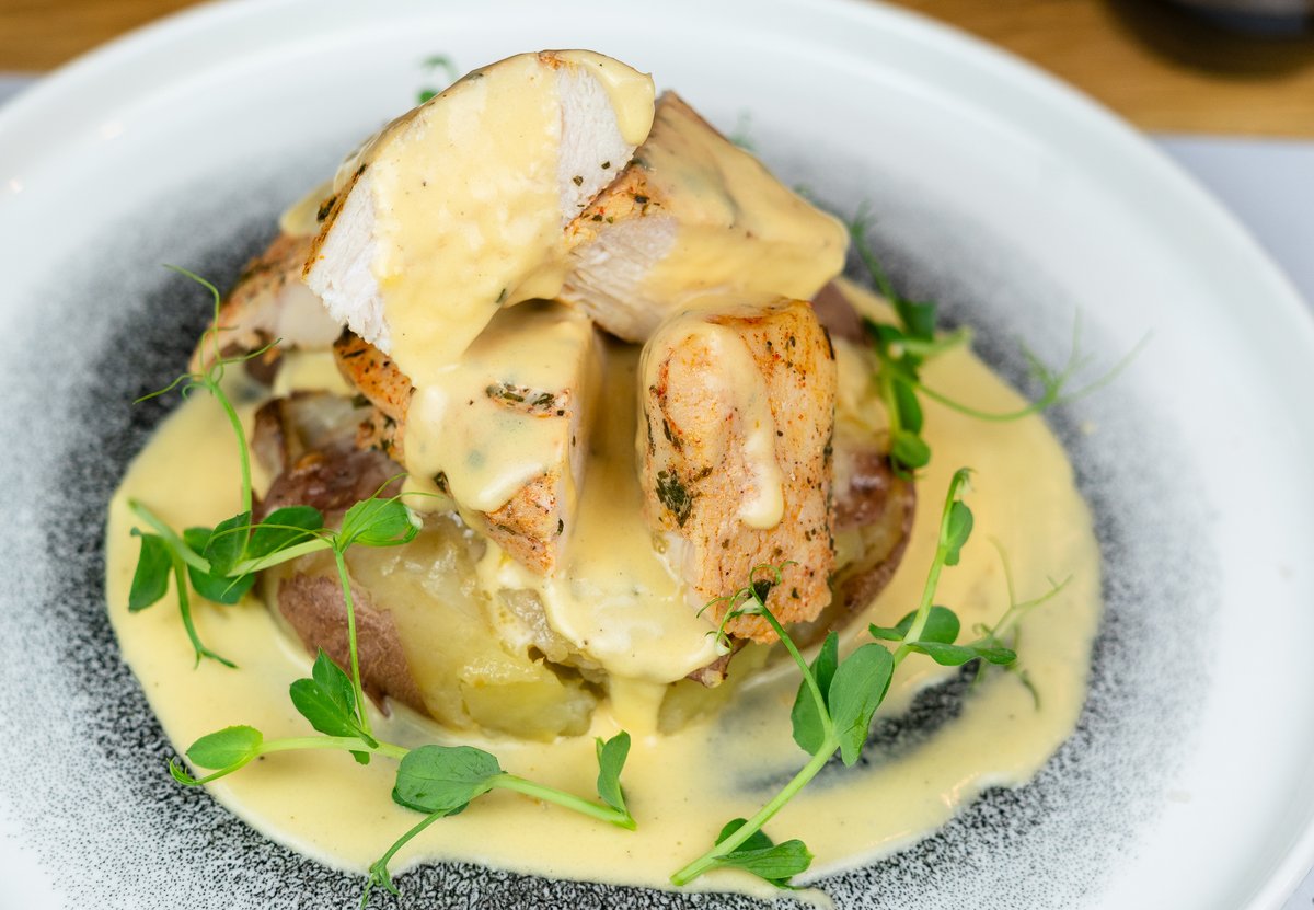 Sous-Vide Csirkemell, Sajtos Smash Burgonya, Cheddar Mártás