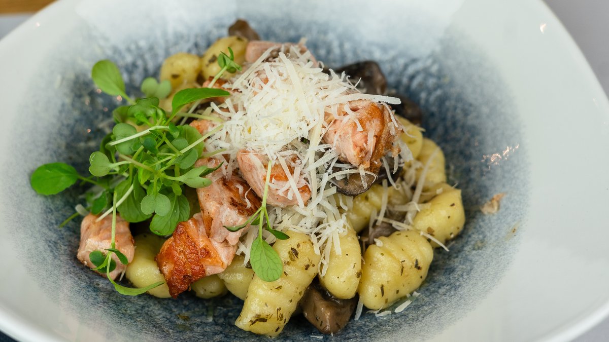 Fehérboros Vajas Gnocchi Gombával és Parmezánnal , Lazaccal (4,7)