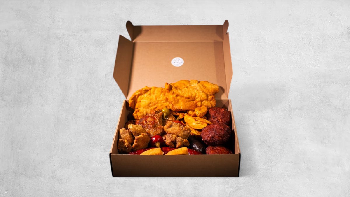 2db fasírt, 2db rántott karaj (15dkg/db), 15dkg pecsenye, 15dkg steak burgonya, 2db kenyér, 2db kovászos uborka, 2db cseresznyepaprika, 1 adag mustár