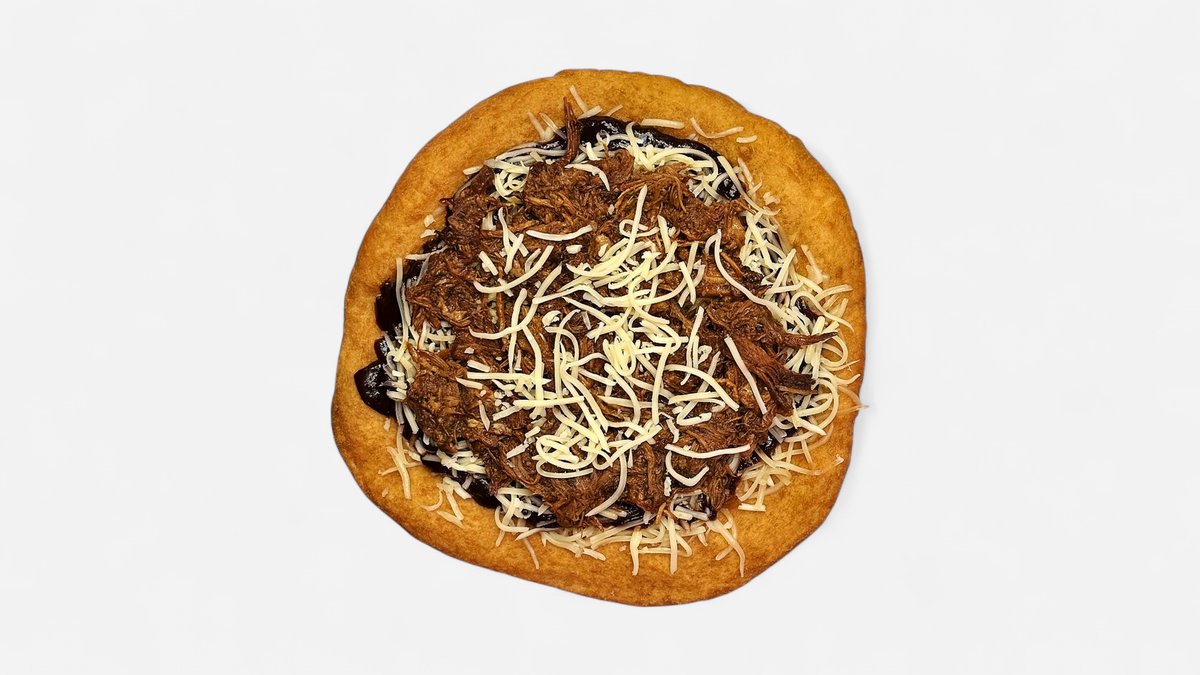 Hagyományos magyar lángos BBQ szósszal, reszelt trappista sajttal és pulled pork tépett hússal.