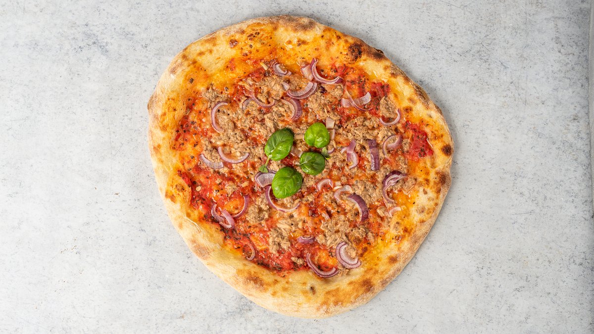 San Marzano D.O.P., tonhal, lilahagyma, olívaolaj, bazsalikom