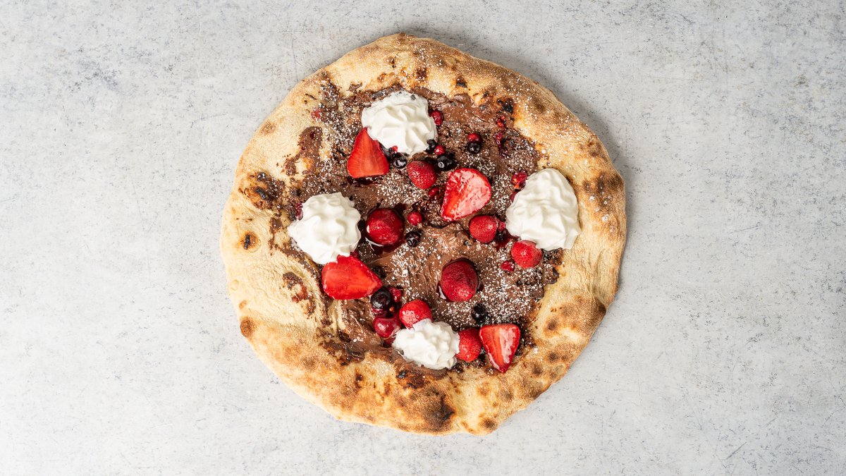20 cm pizza, Nutella alap, erdei vegyes gyümölcsök, porcukor, tejszínhab