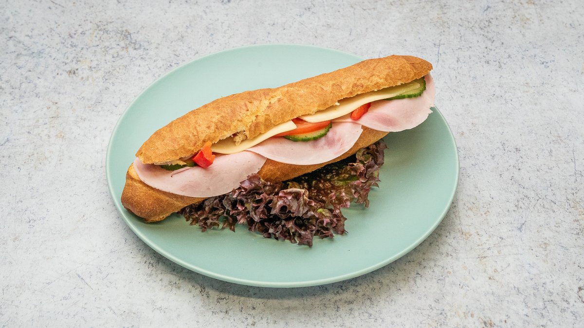 Helyben sütött nagykifli, vaj, párizsi, sajt