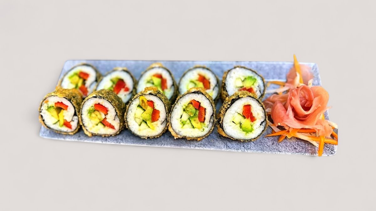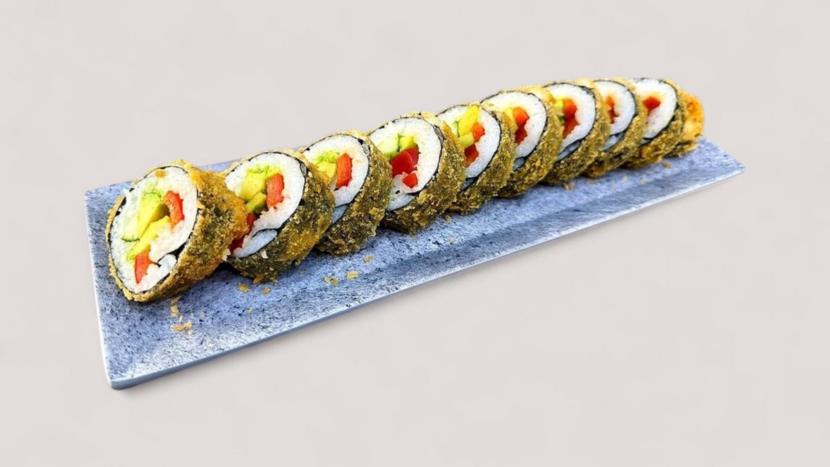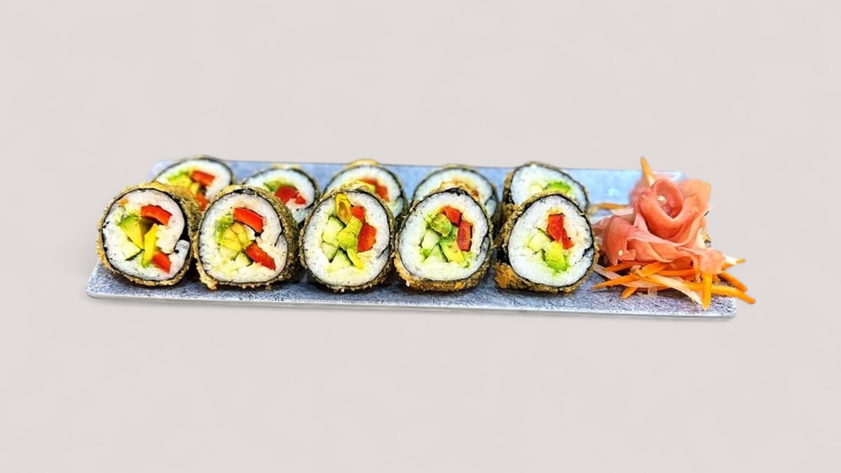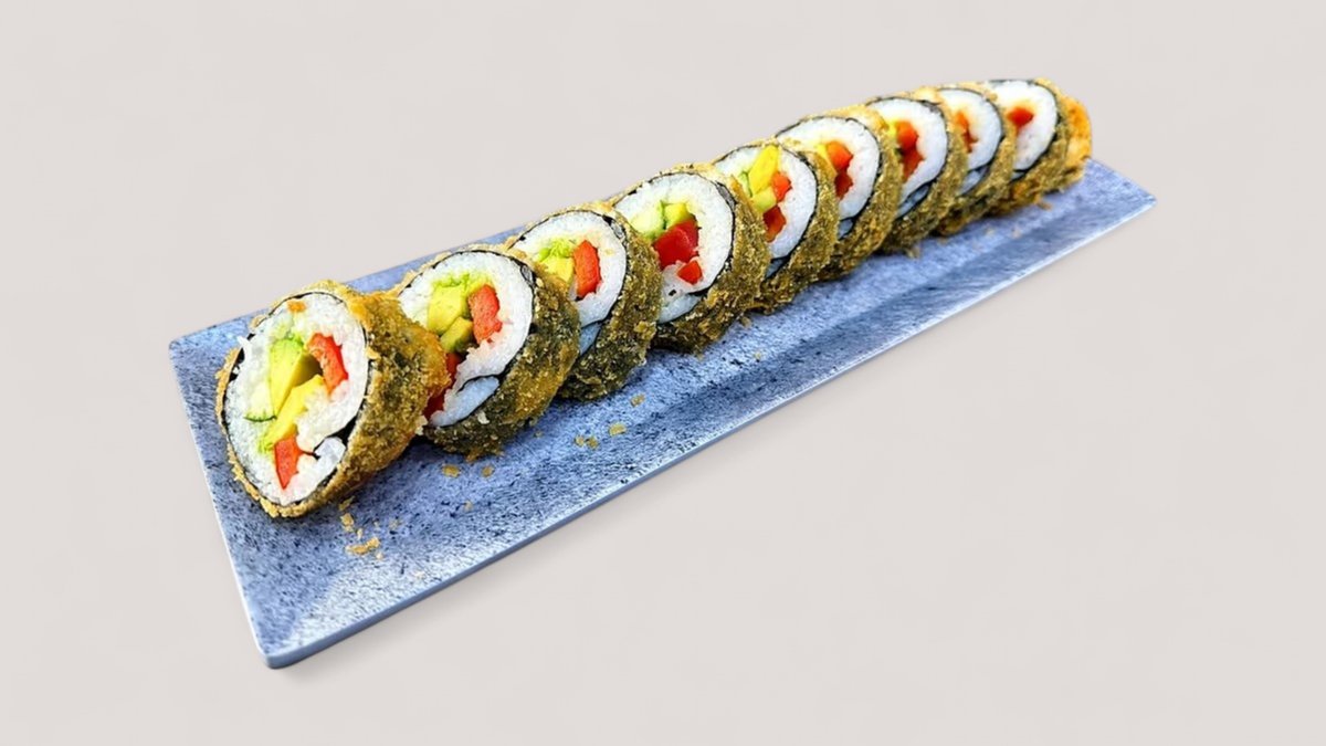 Ropogósra csirkemell,paprika,jég saláta,mangó,uborka,paradicsom,coriander