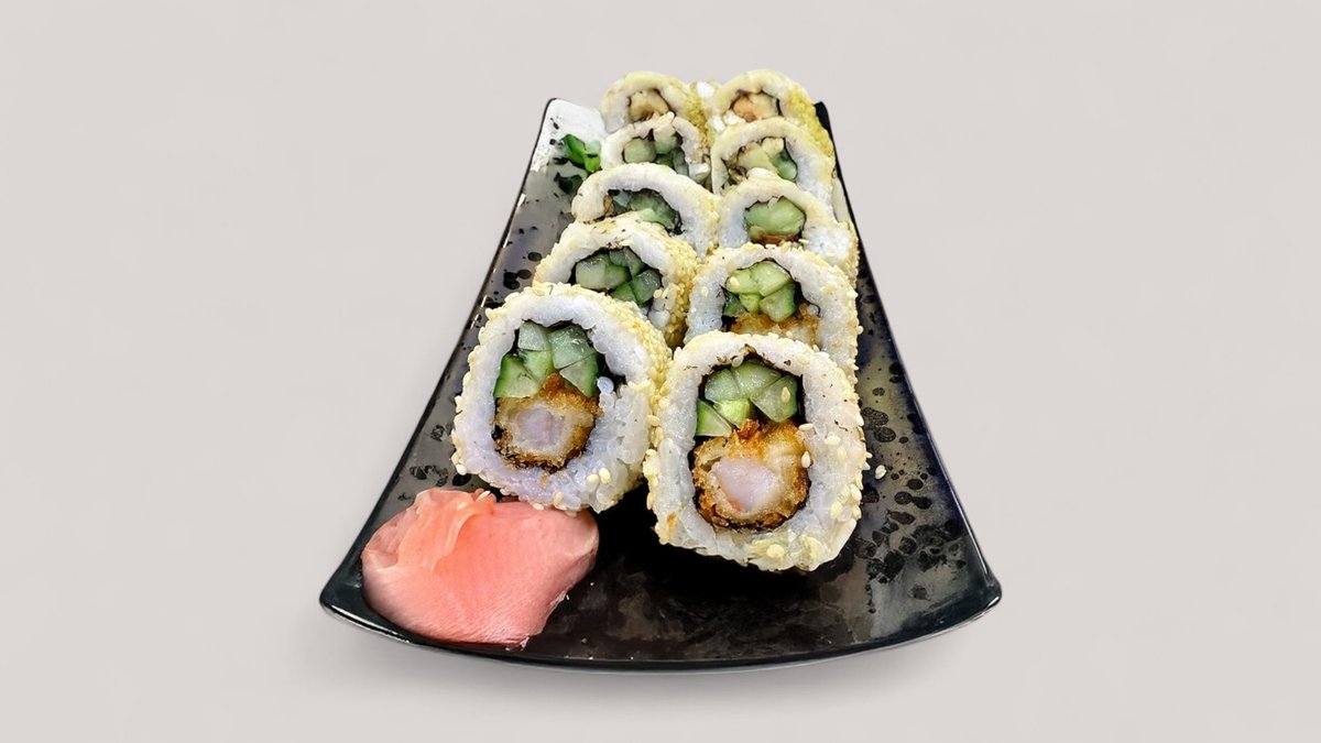 Rák, bún tészta, uborka, jég saláta mogyoró