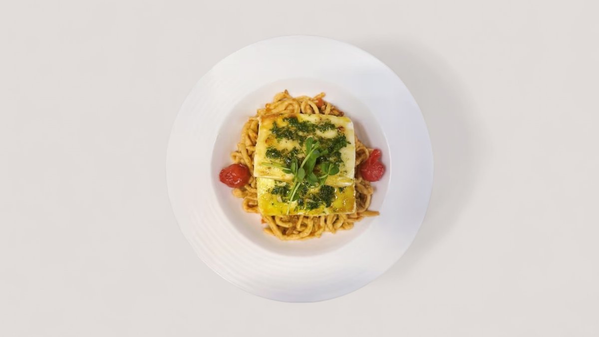 Vörösboros-vargányás-paradicsomos lencseragus spetzle tészta, grillezett fetasajttal