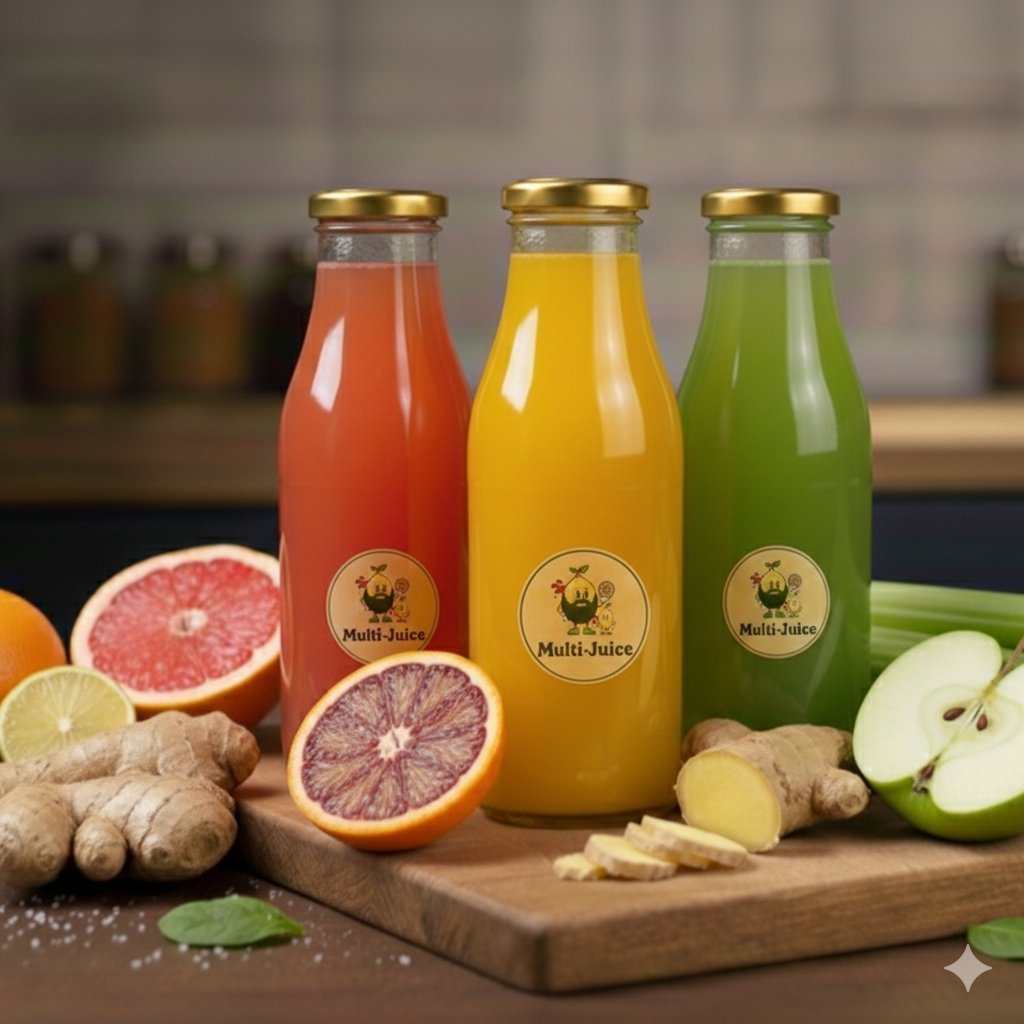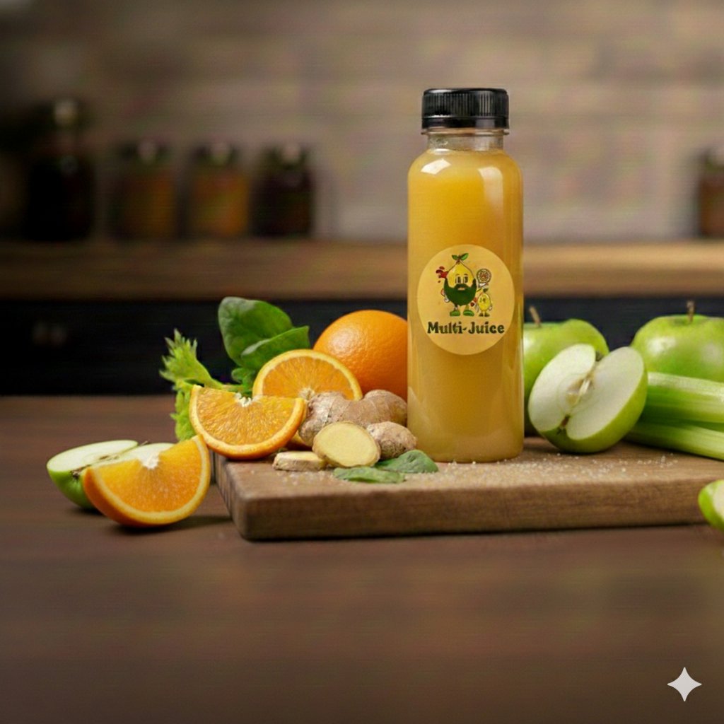 Refresh your day with Multi Juice! Our family has been in the fruit and vegetable trade for 27 years, so we know exactly when an apple is at its sweetest and spinach is at its freshest. This decades-long expertise inspired our latest venture: Multi Juice. We craft our cold-pressed juices and creamy smoothies using selected premium ingredients to bring you the full power of nature. There are no tricks here: every product is made from 100% fruits and vegetables, with no added sugar or preservatives. Carefully selected ingredients, expert preparation, and fresh pressing - delivered straight to your door. Taste the generational knowledge and the pure energy!