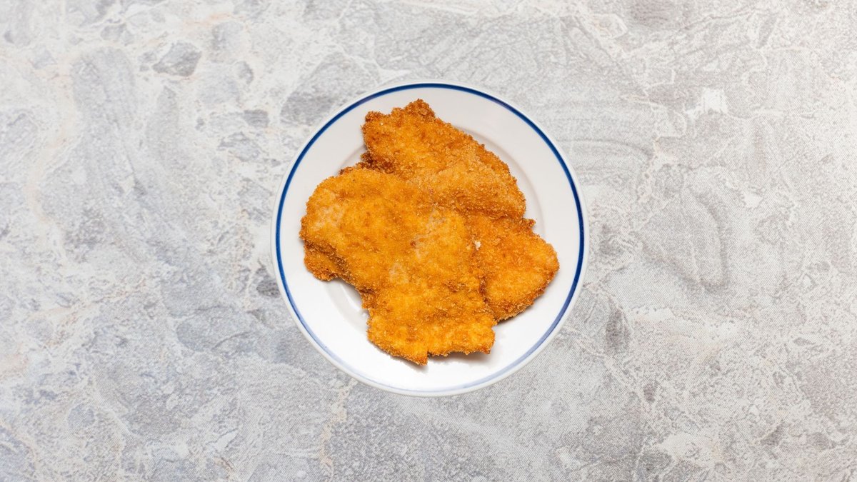 Kívül aranybarna, belül omlós rántott csirkemell. (köret nélkül)