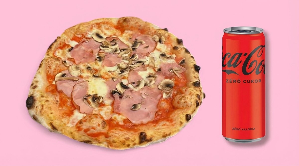 SONKÁS & GOMBÁS PIZZA + választható kedvezményes Coca-Cola üdítő! - PARADICSOMSZÓSZ, MOZZARELLA, OLASZ FŐTT SONKA, GOMBA, BAZSALIKOM, OLIVAOLAJ