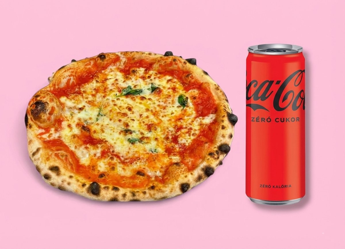 MARGHERITA PIZZA + választható kedvezményes Coca-Cola üdítő! - PARADICSOMSZÓSZ, MOZARELLA, BAZSALIKOM, OLIVA OLAJ