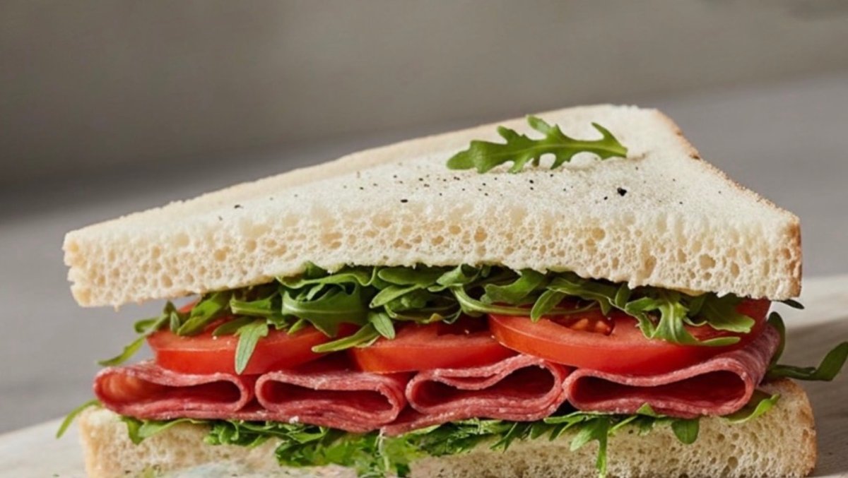 tramezzini, milánói szalámi, paradicsom, rukkola