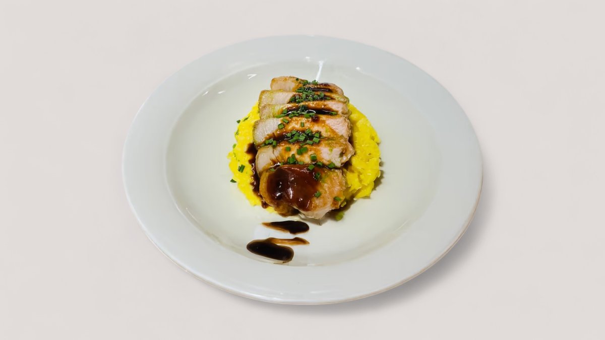 Bőrös csirke, párolt zöldség, burgonyapüré