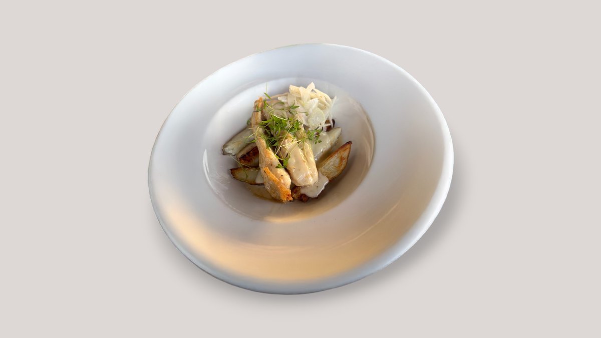 Kacsamáj, szarvasgombás püré, alma