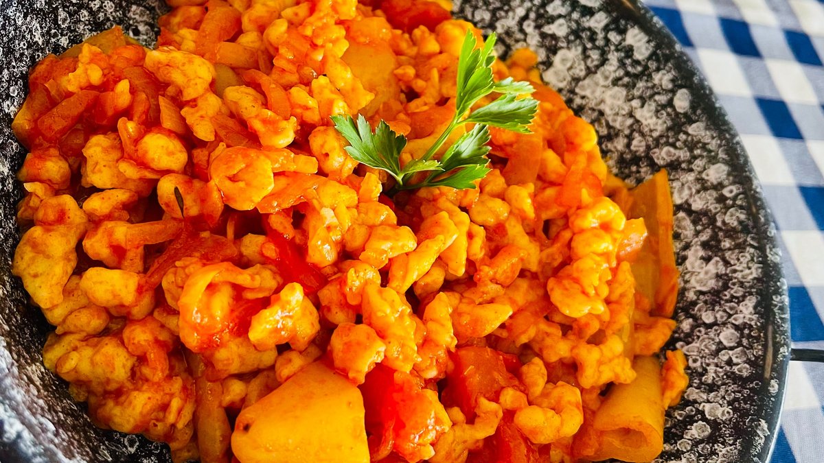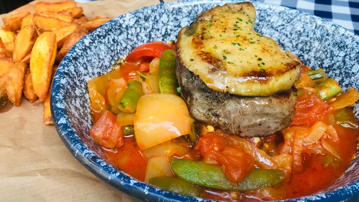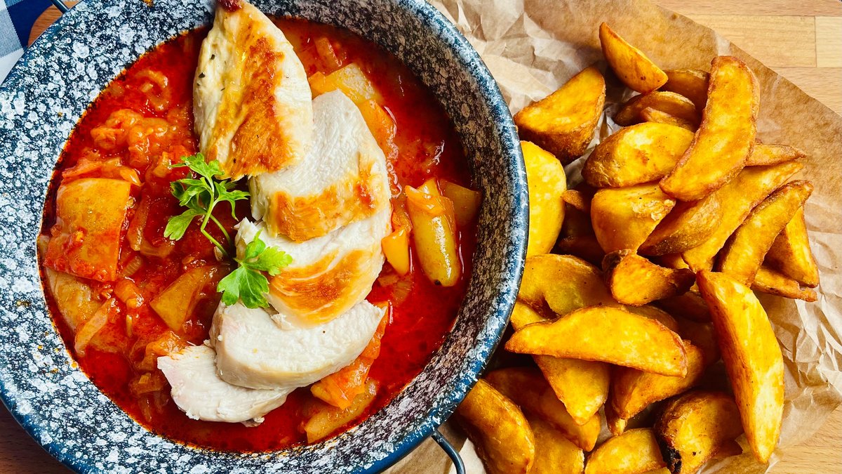 BBQ oldalas steak burgonyával és házi coleslaw salátával