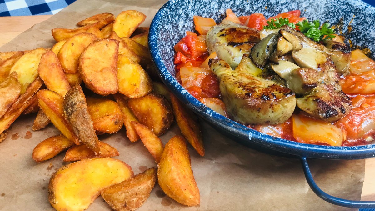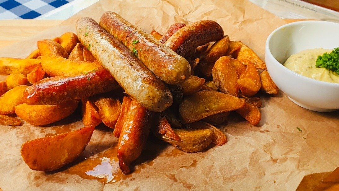 Grillezett kolbász válogatás fűszeres mustárral steak burgonyával