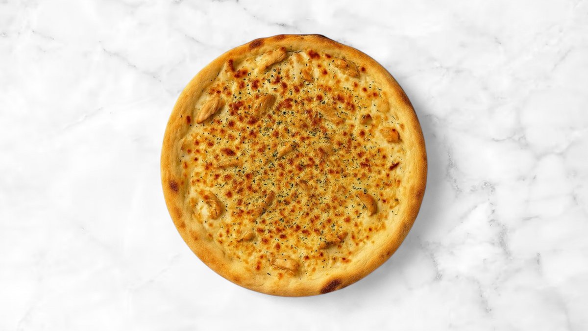 32cm Chicken Supreme Pizza - krémes tejfölös szósz, csirkemell sonka, sajt, csirke, hagyma. A legfinomabb tejszínes pizzánk.