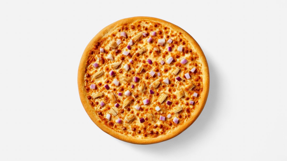Miami 32cm - Paradicsomszósszal, csirkesonkával (H'A'L'A'L), hagymával, fekete olívával, csilivel és barbecue szósszal. Klasszikus pizza.