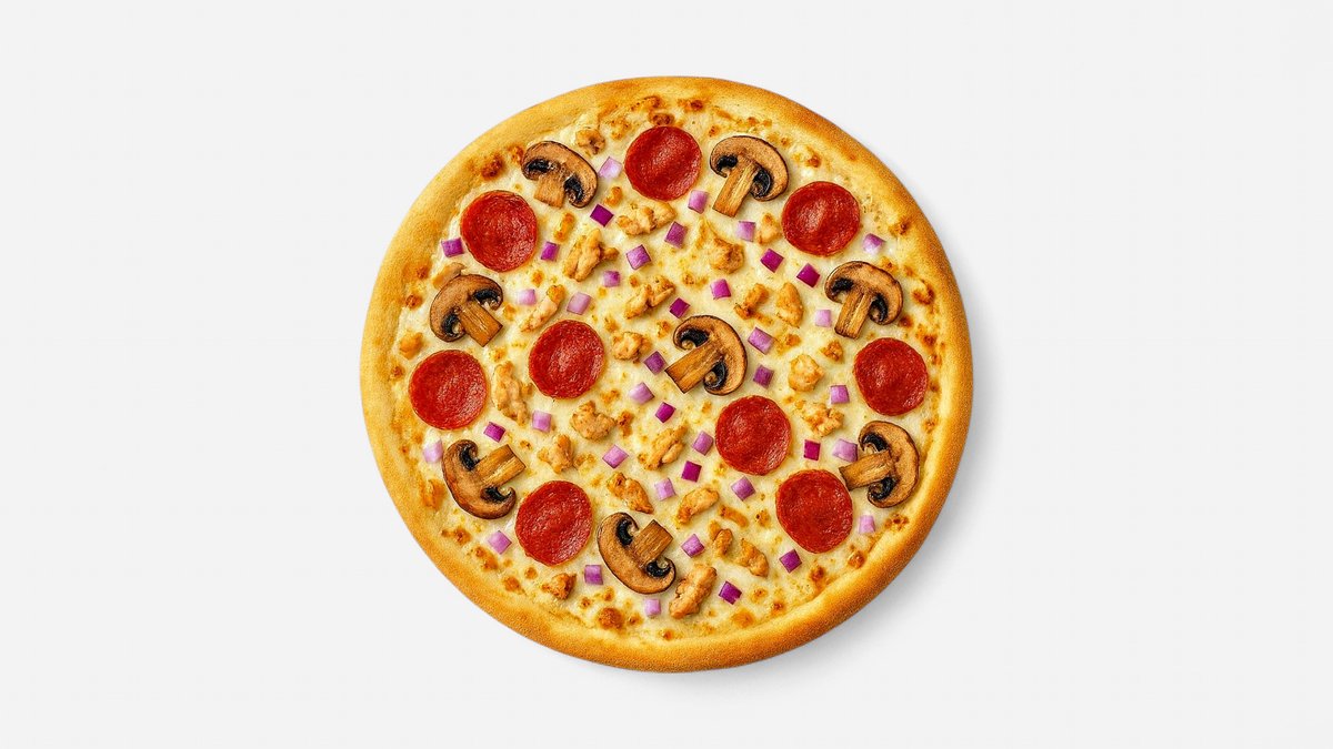 Paradicsomszósz, csirke (H'A'L'A'L), gomba, sajt .