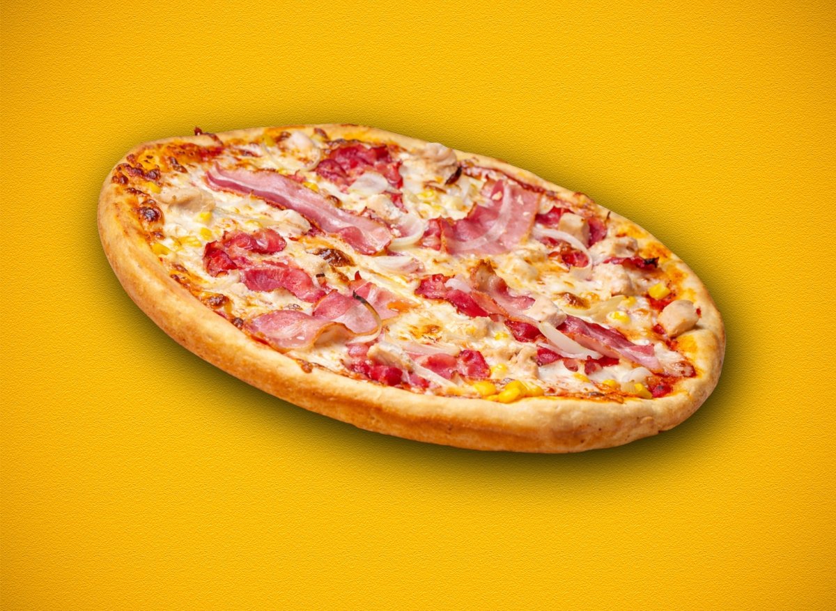 paradicsomos alap, bacon, BBQ, csirke, kukorica, lilahagyma, fior di latte mozzarella sajt