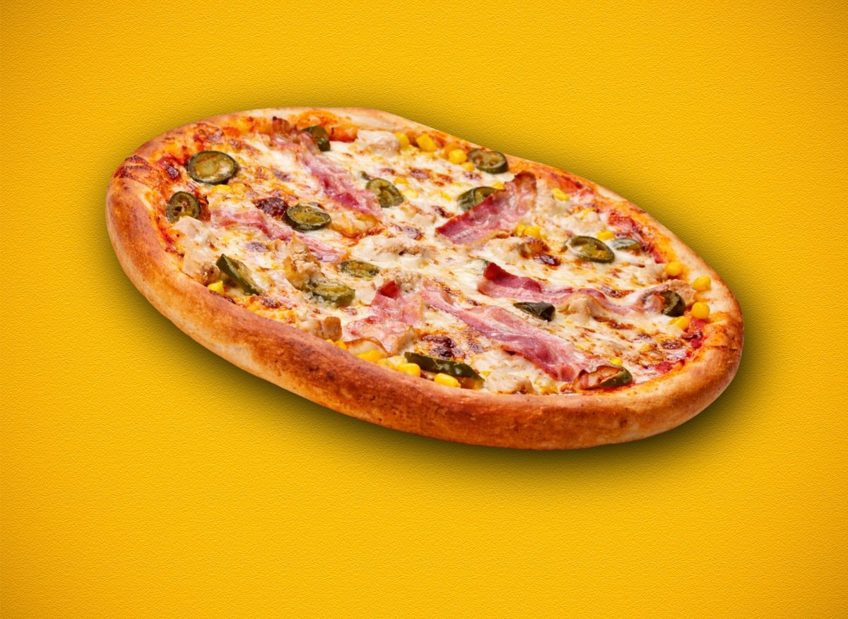 paradicsomos alap, lilahagyma, bacon, csirke, jalapeno paprika, kukorica, fior di latte mozzarella sajt