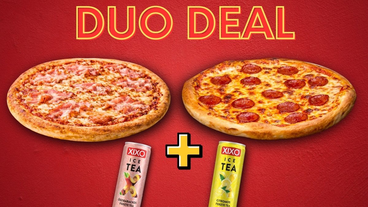 VĂĄlassz kĂ©t tetszĆleges alap pizzĂĄt, Ă©s ajĂĄndĂ©kba adunk 2db 250ml-es dobozos XIXO Ice Tea-t.