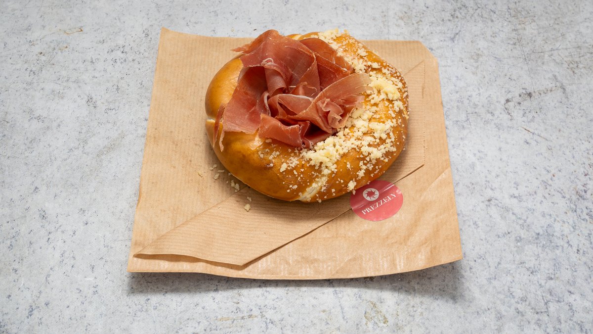 Aszalt paradicsomos perec tészta ,sajtkrém, serrano sonka szendvics