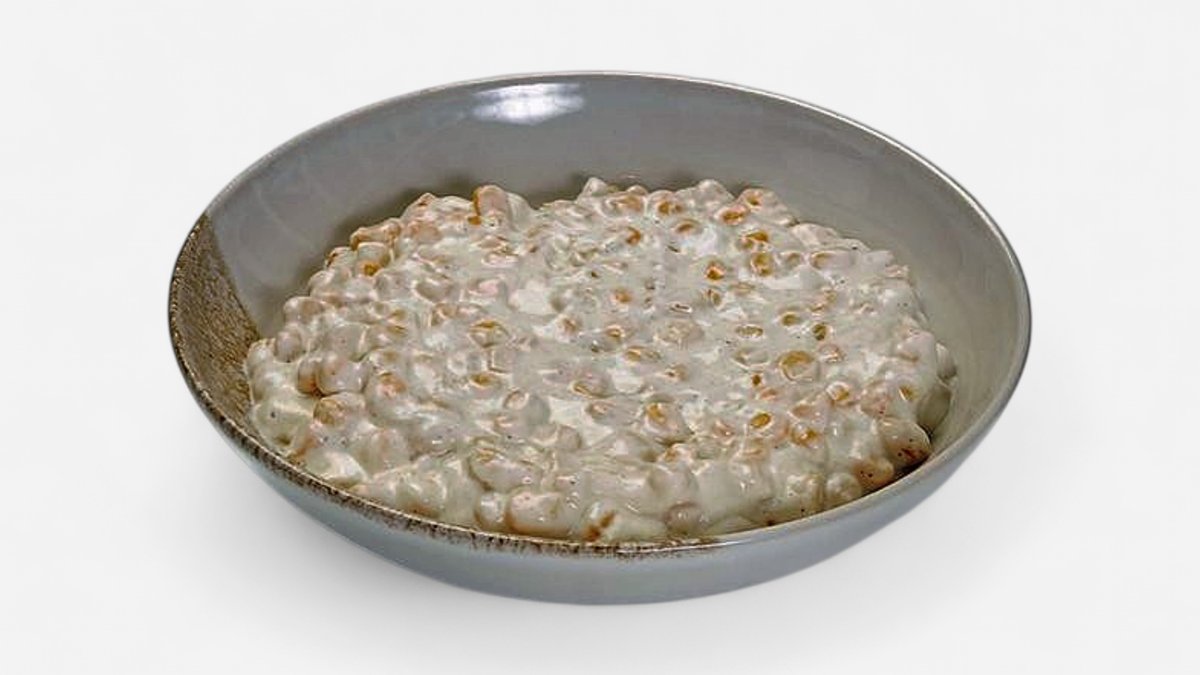 Roston karaj fokhagymás tejföllel lekenve, baconnel és füstölt sajttal megszórva, majd kemencében sütve. (Allegén: Tej)