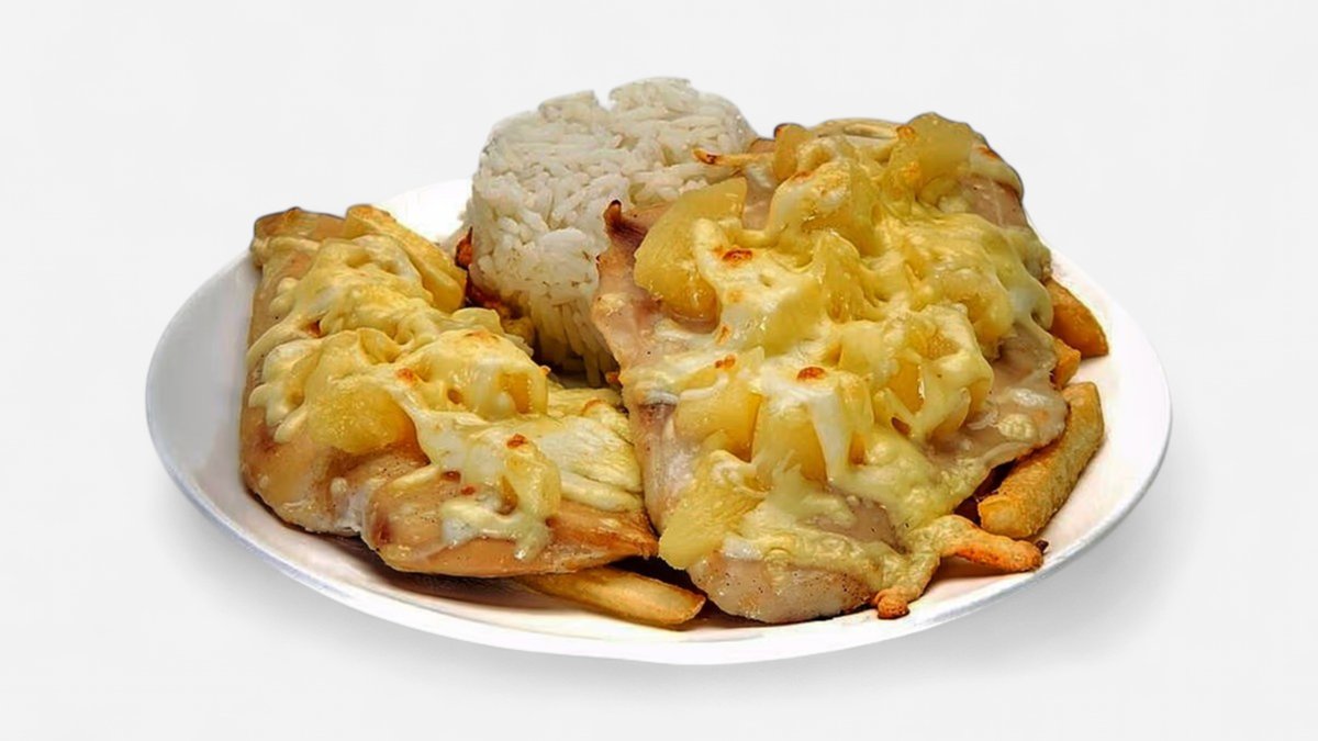 Szaftos, roston sült csirkemell sonkával és ananásszal rétegezve, amelyet sajttal borítva kemencében sütünk. (Allegén: Tej)