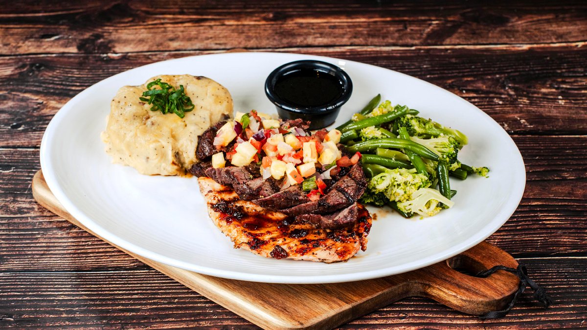 Egy rump steak és egy csirkemell roston szaftosra grillezve, whiskey szósszal meglocsolva. Chef zöldséggel, cheddar sajtos burgonyapürével és ananászos pico de galloval tálaljuk.