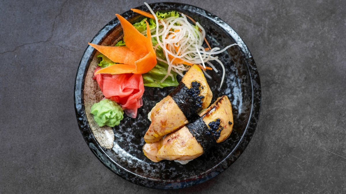 10. Rák tempura perzselt lazaccal, teriyaki szósz, rák kárviár (5 db)