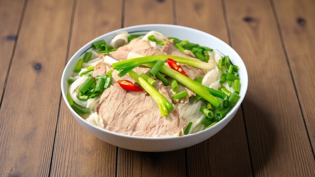 Rice noodle, meat broth, onion, bean sprouts, coriander with Duck