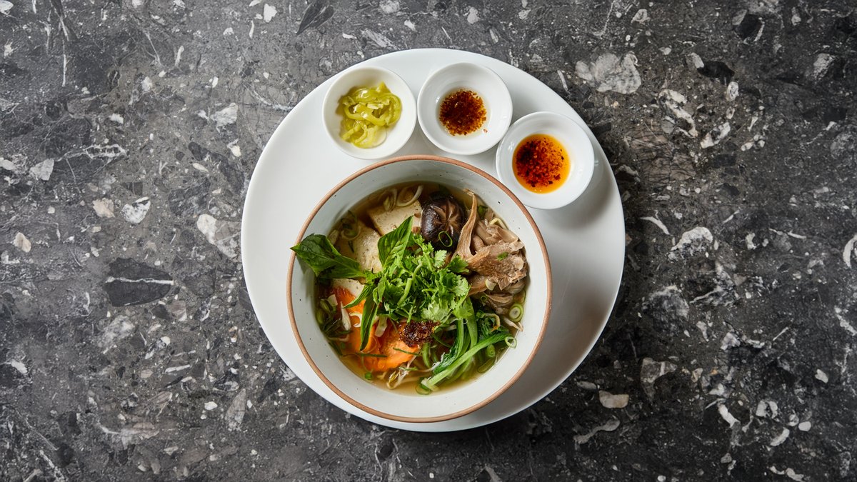 pak choi, shiitake, répa, babcsíra, pirított mogyoróhagyma, osztrigaszósz, marhahús