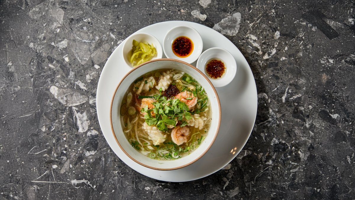 Rák, sertéshús, tápiókaliszt, pirított hagyma, koriander