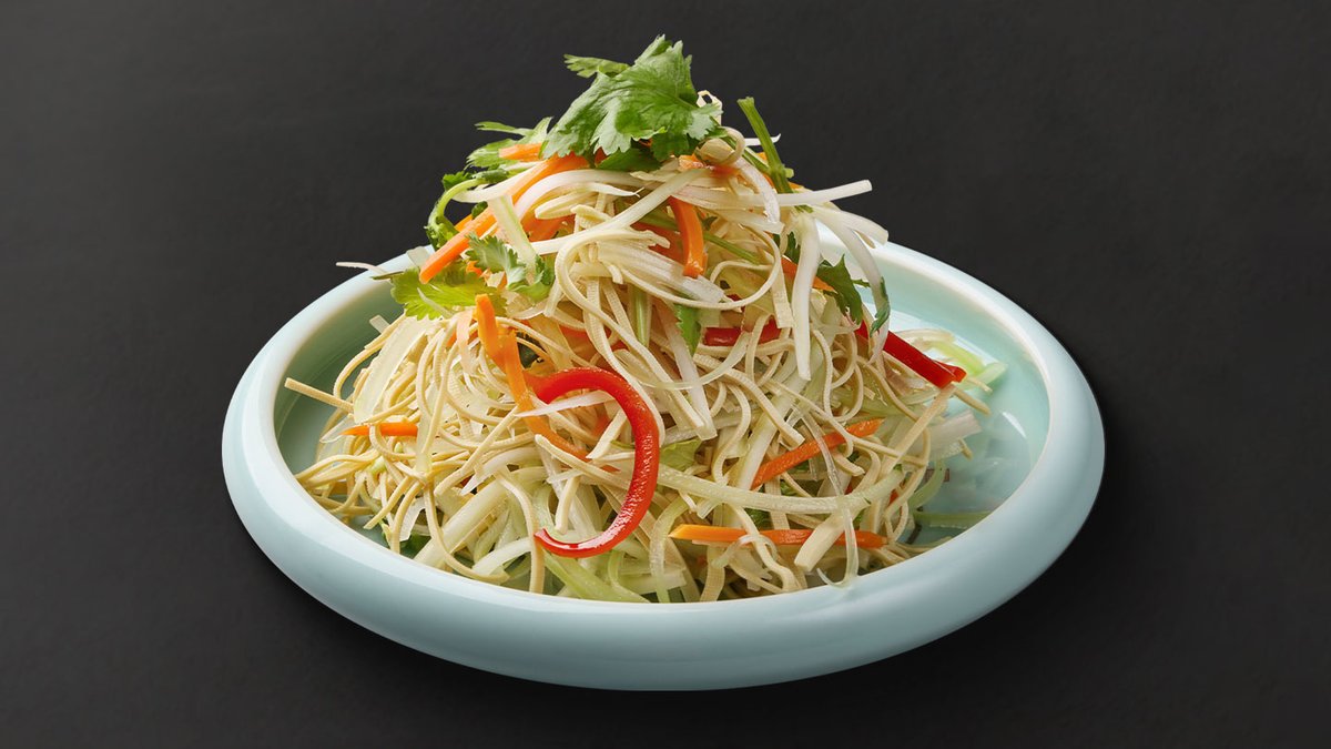CO2 Pirított sertésbél-karikák mini wokban tálalva