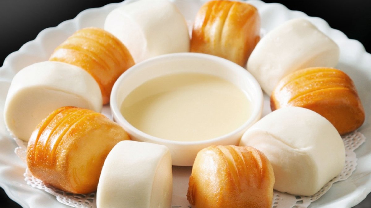 G19 Gőzölt mantou kenyér sűrített tejjel tálalva