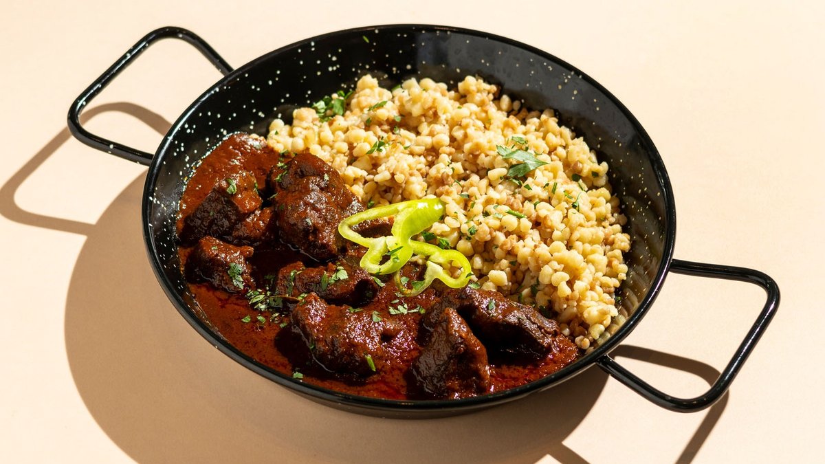 marhahússal, sárgarépával, fehérrépával, zellerrel, babbal, csipetkével & házi kovászos kenyérrel